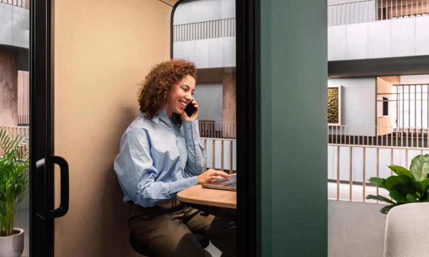 Budki akustyczne stają się elementem, który można szybko wdrożyć, aby uzupełnić brakujące funkcje. Tworzą miejsca do skupienia, prywatnych rozmów czy pracy wymagającej ciszy – bez konieczności reorganizacji całego biura.